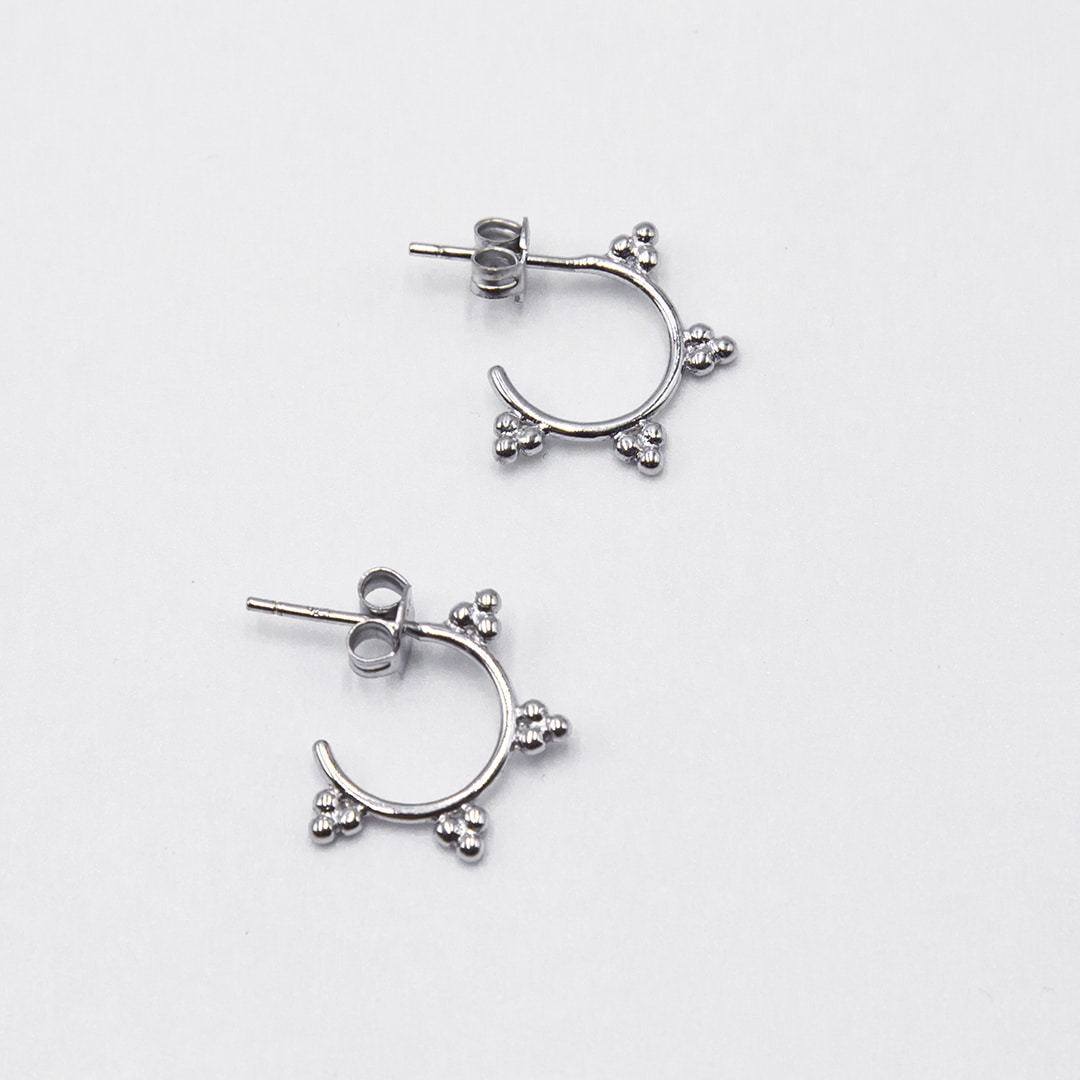 Pendientes de plata de ley con forma de aro de 17mm con cuatro flores de tres bolitas.