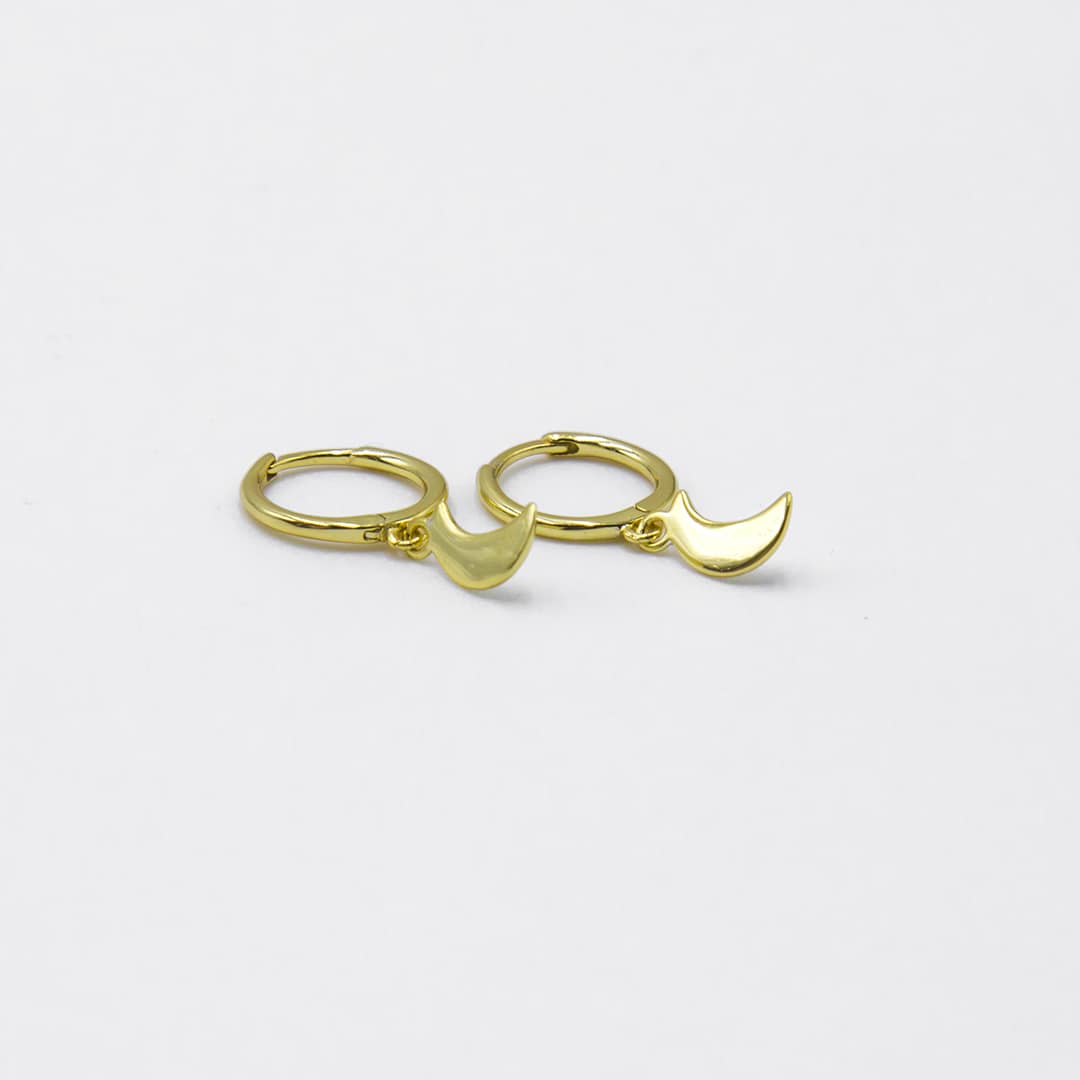 Aro con luna colgante de plata de ley chapado en oro con 20 mm.