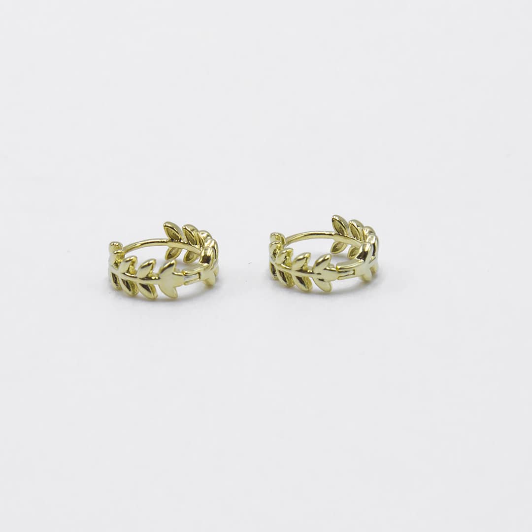 Aros de plata de ley chapado en oro con forma de hojas con 14mm de diámetro.