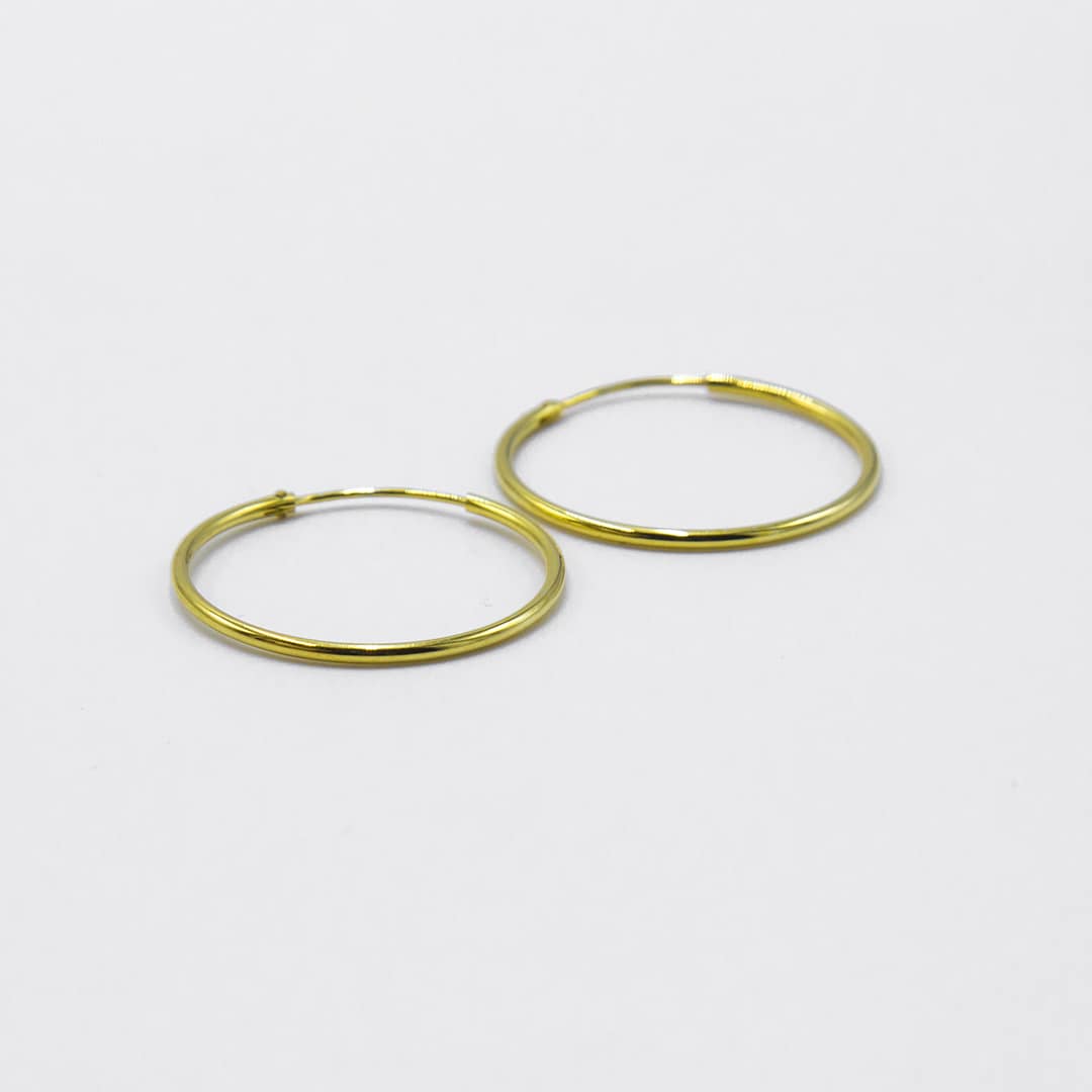 Pendientes de plata de ley en forma e aro dorado de 29mm.
